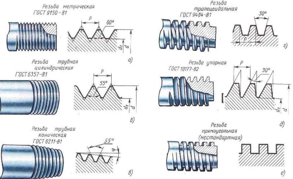 Для подбора сверла для резьбы также нужно знать, что по совокупности параметров резьбы классифицируют на несколько основных видов: