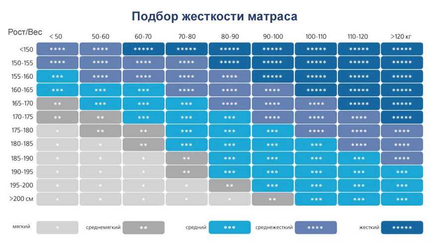 Самая важная задача, которую должен выполнять матрас, — это правильно поддерживать позвоночник, поэтому его следует адаптировать в первую очередь к росту и весу тела. Бытует мнение, что матрас должен быть максимально жестким, на самом деле человеческий вес является определяющим фактором, и если вы выберете слишком жесткую модель, вам будет максимально не комфортно.