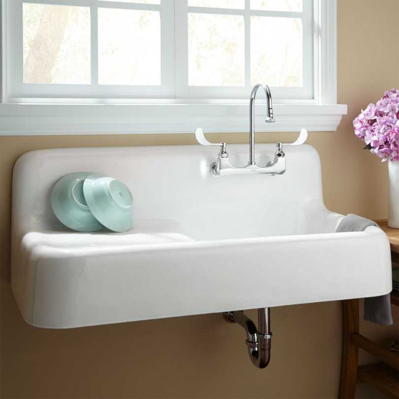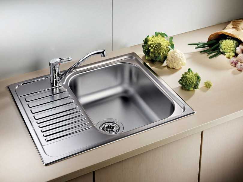 Оптимальным вариантом будет установка глубокой раковины в сочетании с невысоким смесителем. Это позволит исключить разбрызгивание воды при мытье посуды. Можно выбрать изделие из нержавеющей или эмалированной стали.