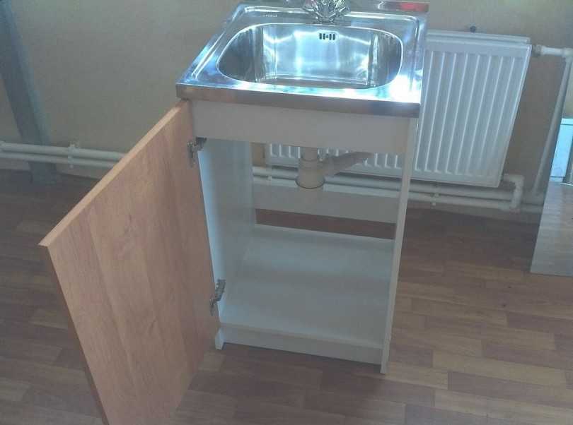 Большую и тяжёлую мойку только герметиком крепить нельзя. В таком случае она может провалиться со временем в низ тумбы вместе с посудой и повредить канализационные трубы, крепления и водяные шланги. Укрепить ее можно с помощью дополнительных брусков или установки внутренней защищающей обрешётки.