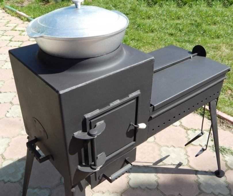 Дверку на топку нужно изготовить чугунную и надежно закрывающуюся. Ее основание делают из кирпича, а стены выводят немного вверх над землей. Затем на него ставится деревянная конструкция. Траншею, где находится дымоходная труба, засыпают землей, а затем хорошо трамбуют. Это необходимо для того, чтобы труба и дым охладились.