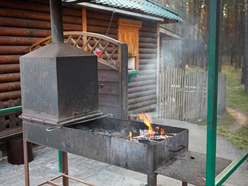 Такой вариант коптильни прекрасно подходит для тех, кто выезжает на дачу на время и не хочет выстраивать полноценную коптильню у себя на участке.