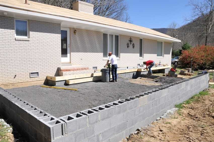 Поскольку застекленное крыльцо не предназначается для жилья, и там нет какой-либо огромной мебели, то есть возможность использовать обычную бетонную подушку, которая будет в качестве самого фундамента.