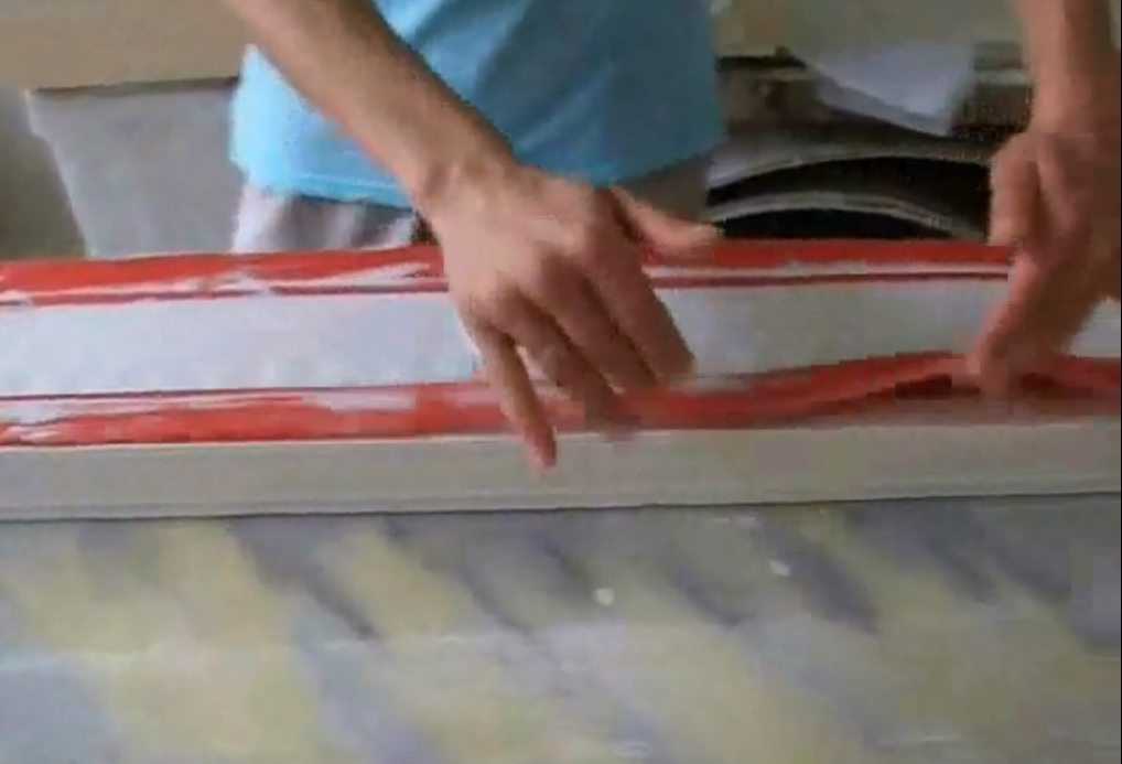 Выдавленную полоску шпатлёвки нужно аккуратно размазать пальцем, чтобы не только заделать образовавшийся зазор, но и не повредить декоративный рельеф, замазав его слоем шпатлёвки.