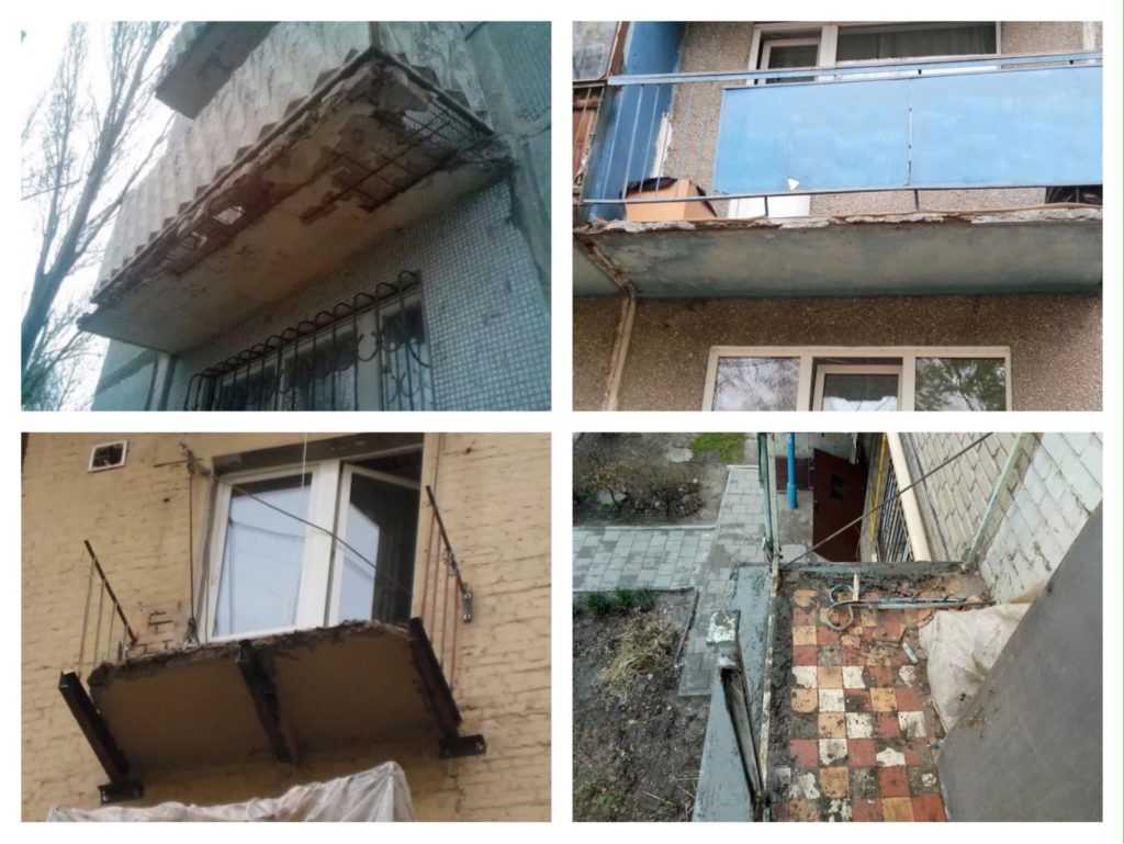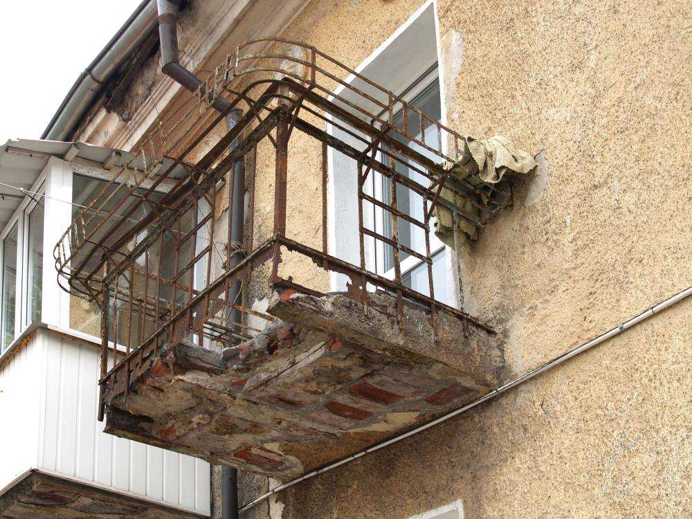 Существует ряд признаков, указывающих на ветхое состояние балкона и его небезопасность. Если в полотне балконной плиты появились трещины, если стала видна арматура и железный каркас, если образовались трещины в месте стыка балкона и стены, если часть стены или балкона уже обрушилась, то необходимо срочно провести укрепительную работу и исправить опасный балкон.