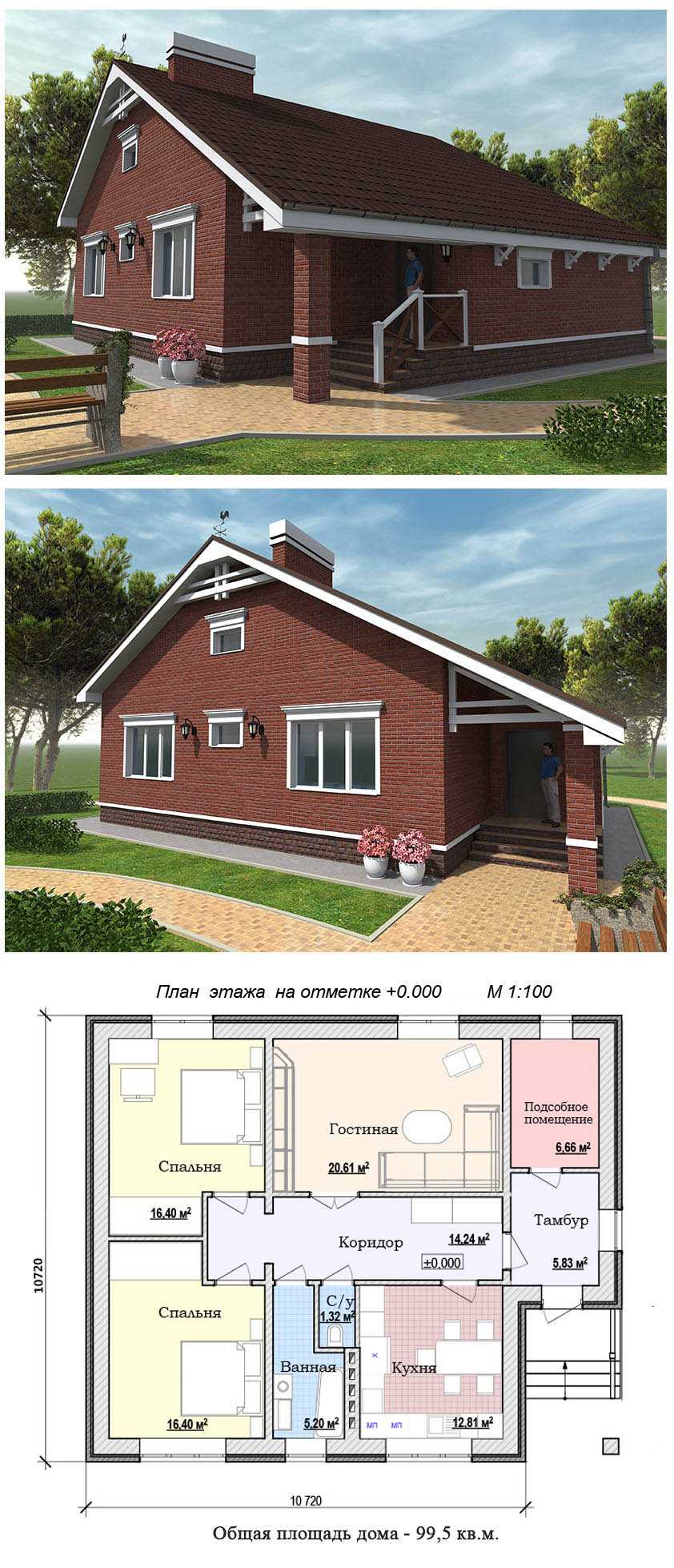 Одноэтажный дом 7*7,5 с пристроенной террасой