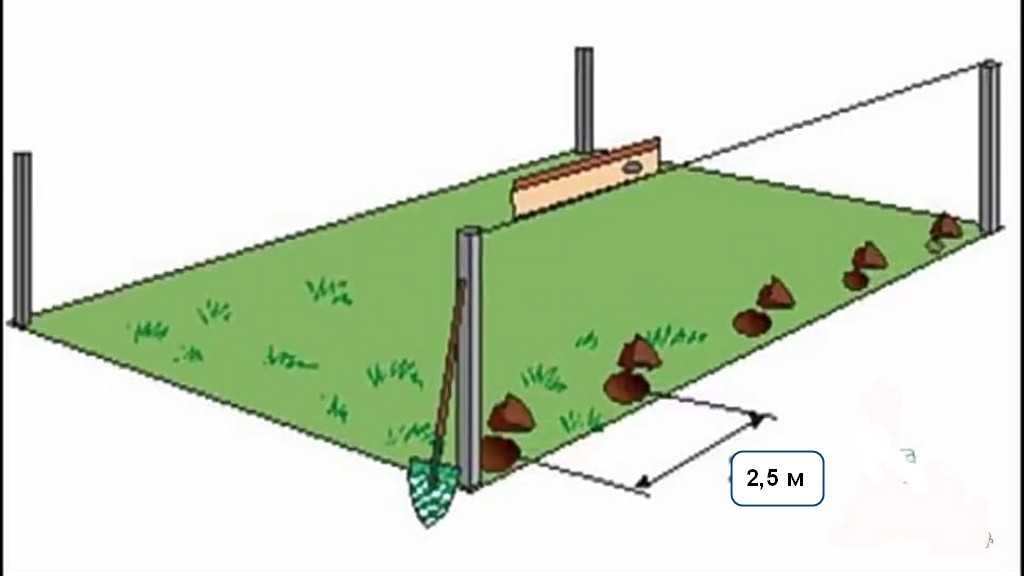 Изначально проводится разметка с помощью шнура и деревянных колышков. Под такой забор рекомендуется заливать ленточный фундамент. Он отлично выдерживает высокие нагрузки.