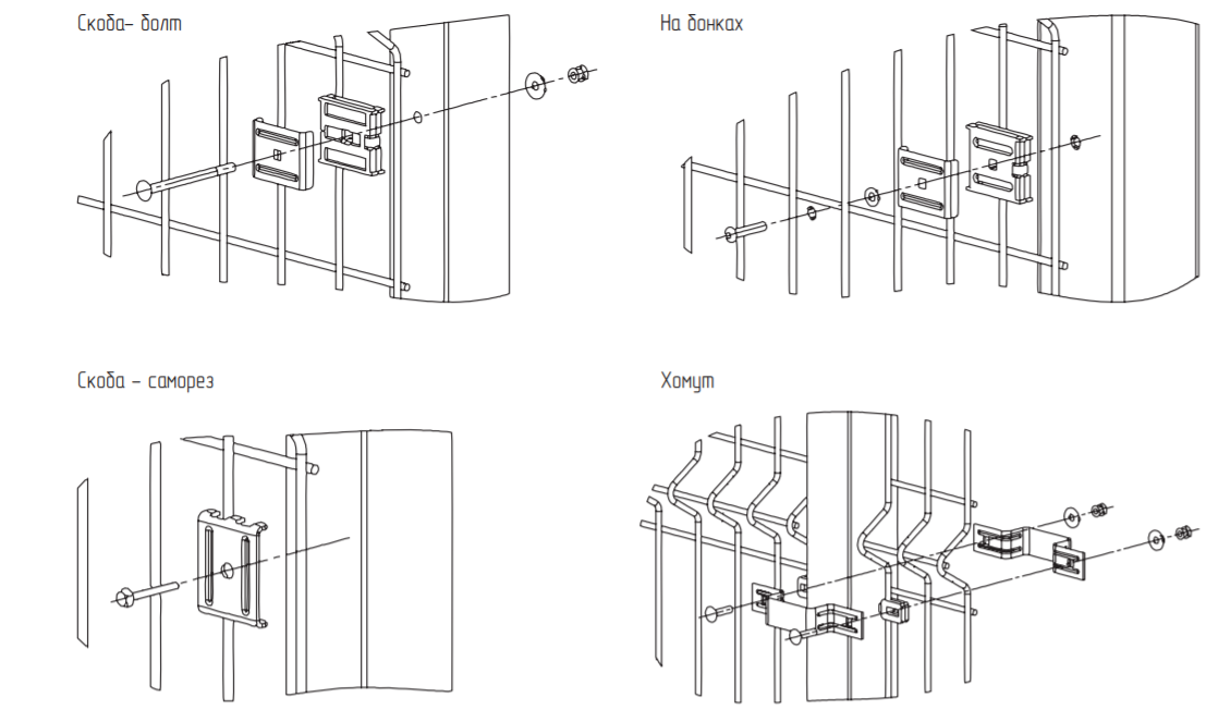 В самом конце остается только прикрепить секции к установленным опорам. Для этого используются хомуты, скобы либо прижимные пластины с гайками и болтами.