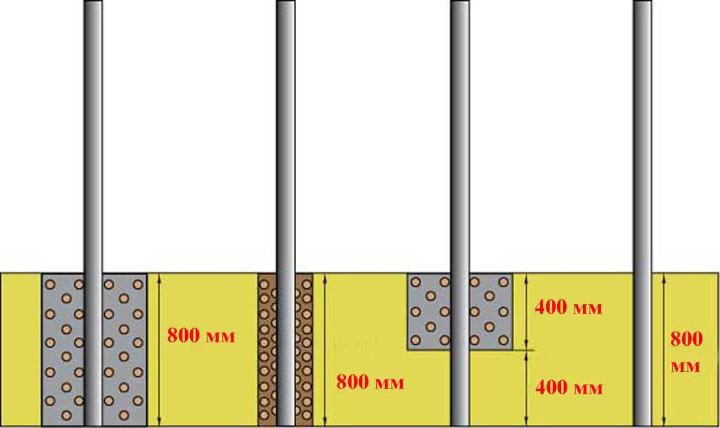 Варианты установки столбов ограды