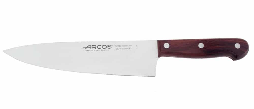 В рамках серии бренда Arcos можно выделить классическую модель ножа Latina, с деревянной рукоятью и клинком из нержавейки твёрдостью 53-56 HRC. По сути, то же самое, но в другом комплекте (с полиоксиметиленовой рукоятью) представляют собой линейки Clasica и Universal. Они отлично «сидят» в руке, обладают высоким качеством и несоизмеримо малой стоимостью.
