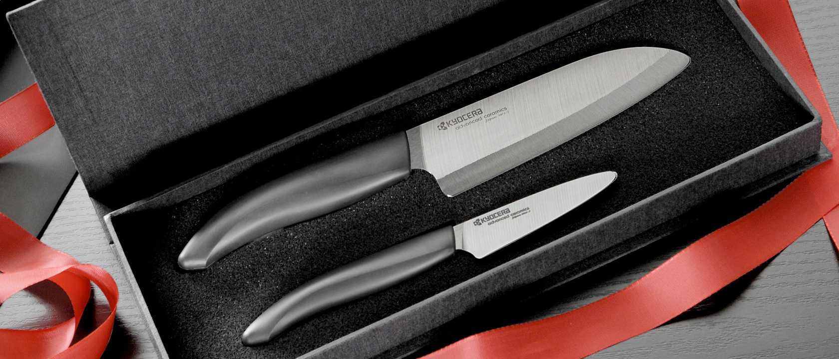Kyocera славится керамическими кухонными ножами нового уровня качества. Лезвие циркониевой керамики требуется затачивать гораздо реже, чем стальной клинок. По прочности оно уступит только алмазу. Абсолютно гладкая поверхность лезвия делает ножи более гигиеничными в применении.