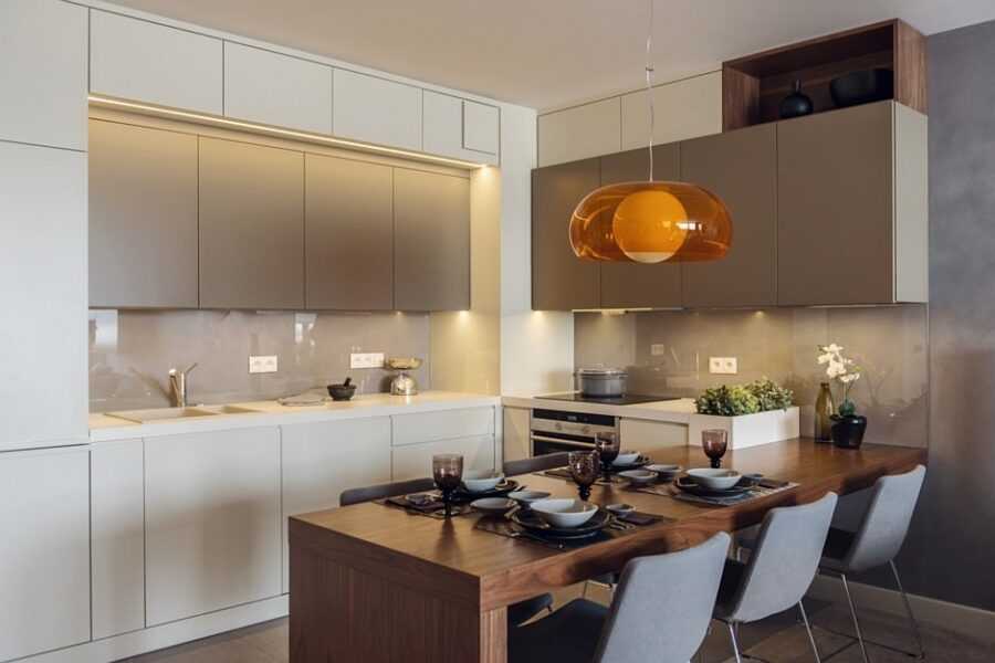 Кухня со столовой и гостиной – современный дизайн 2020