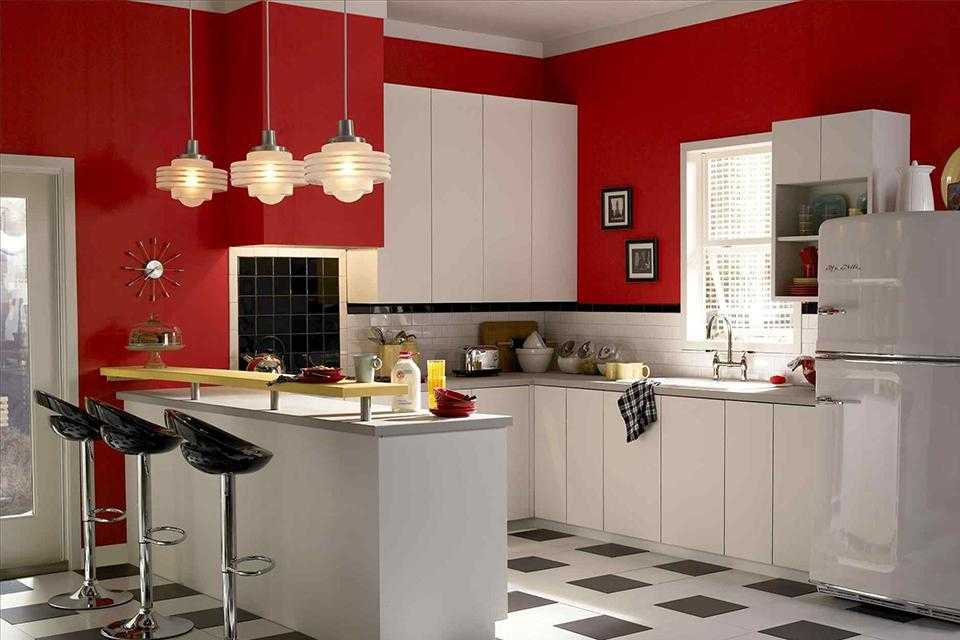 Как оформить интерьер кухни с помощью красных виниловых обоев?
