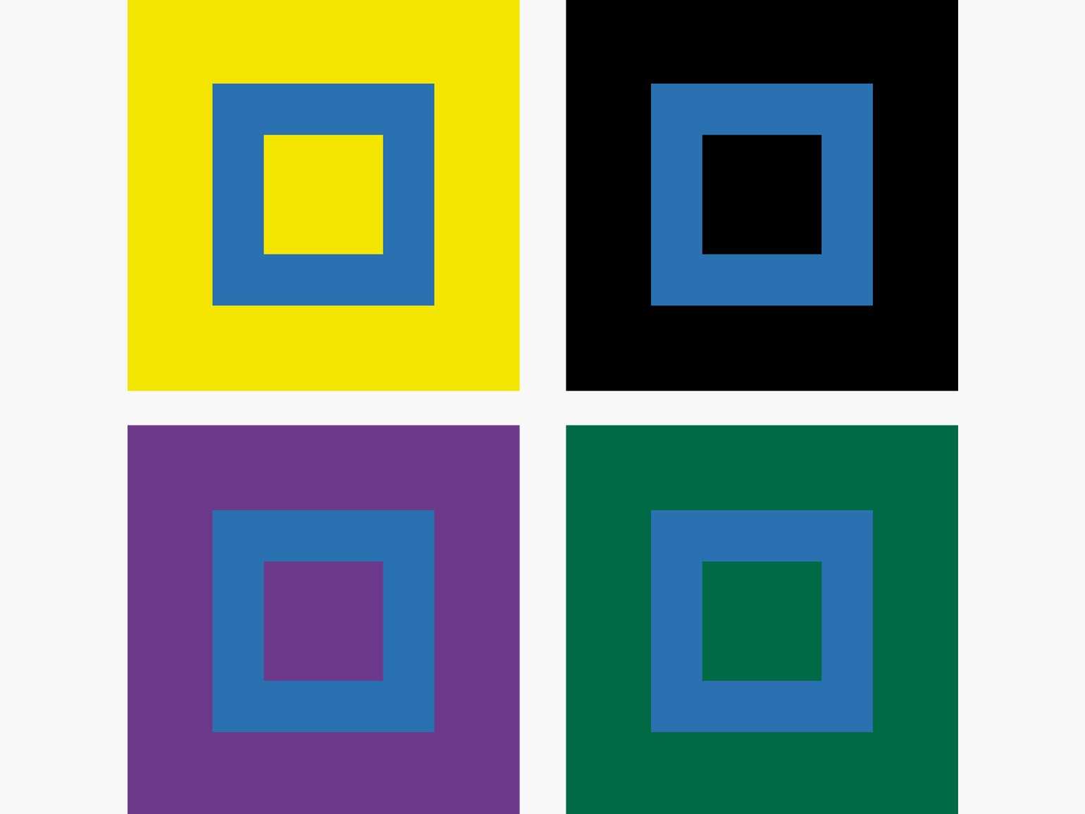 На жёлтом фоне синий приобретает зеленоватый оттенок, а на чёрном — сияет в своей чистоте и силе. Иллюстрация: Skillbox Media