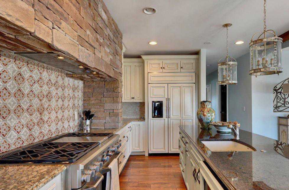 Если позволяет пространство и освещение кухни, которые являются достаточными, то можно отделать при помощи камня сразу несколько стен. Это тоже интересное решение, но только для определенных стилистических направлений, которыми, к примеру, являются шале или кантри.
