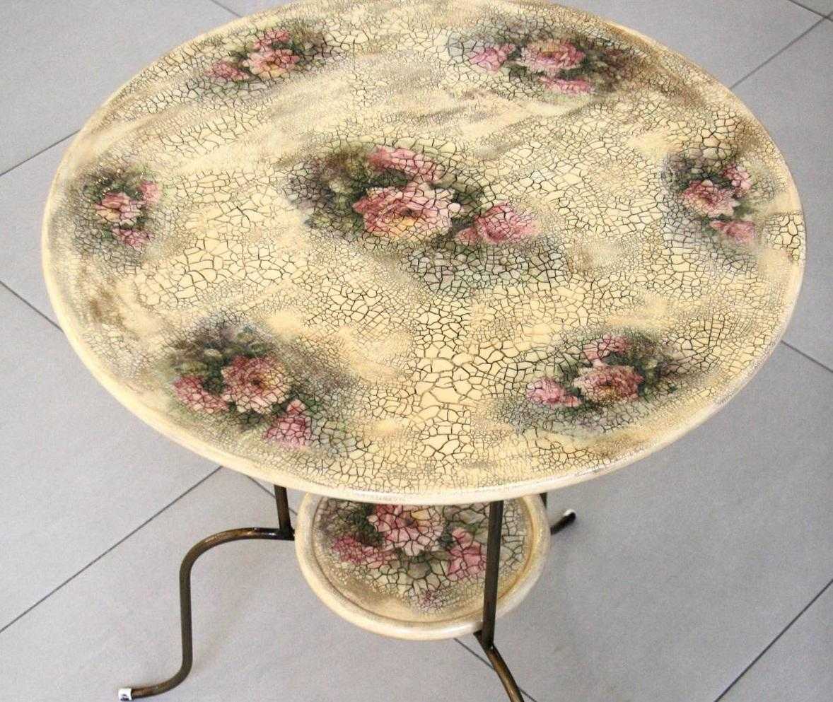 Журнальный. Такой столик выполняет в основном декоративные функции. Поэтому при декупаже журнального столика своими руками можно экспериментировать с фактурой и цветом. Данный вид мебели является самым лучшим вариантом, чтобы раскрыть творческий потенциал.