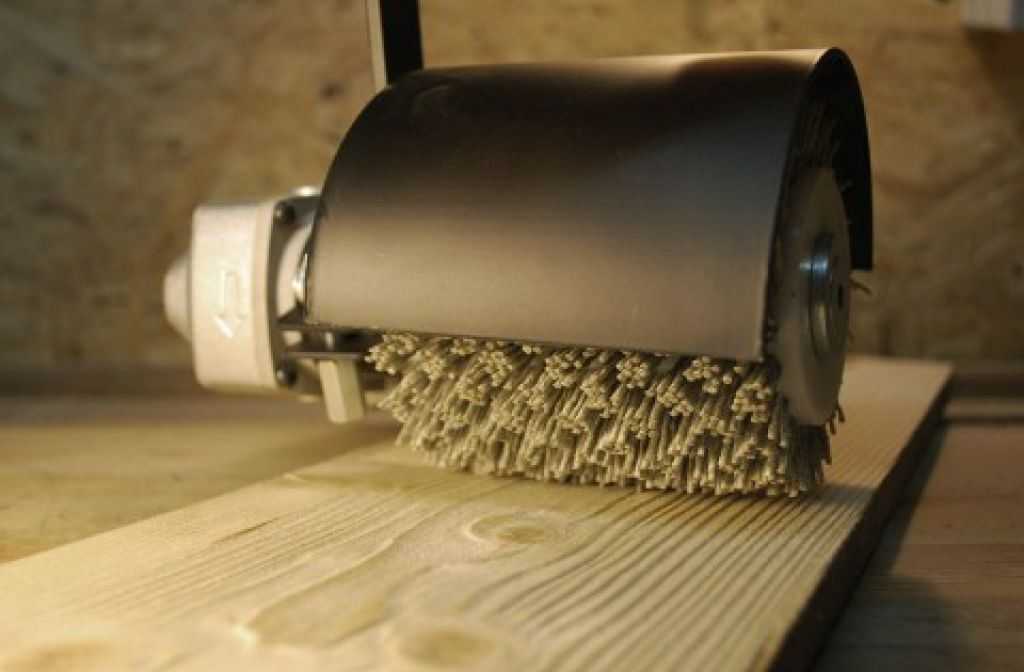 | Этап №2 | Шлифовка нейлоновой абразивной щеточной насадкой с целью очистки от мелких частиц и крошек древесины |
