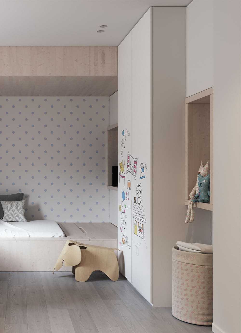 Бело-серая детская — теплое сочетание, которое подойдет и для маленького ребенка и для подростка. Подросток в нейтральную серую гамму привнесет свои яркие аксессуары и добавит красок. Для маленького ребенка родители добавят игрушки и текстиль в пастельных тонах, что добавит уюта и тепла.