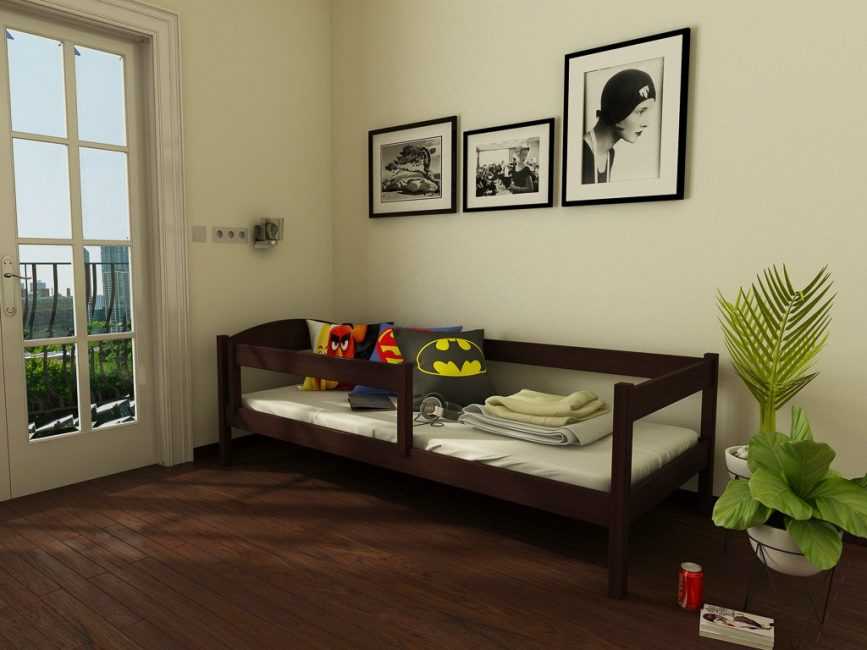 - Безопасность. По правилам дно кровати располагается на небольшом расстоянии от пола. Мебель не должна иметь острых углов и шероховатых поверхностей. Для малышей обязательно наличие бортиков, которые обезопасят от неожиданного падения во время игр или отдыха; со временем их можно убрать.