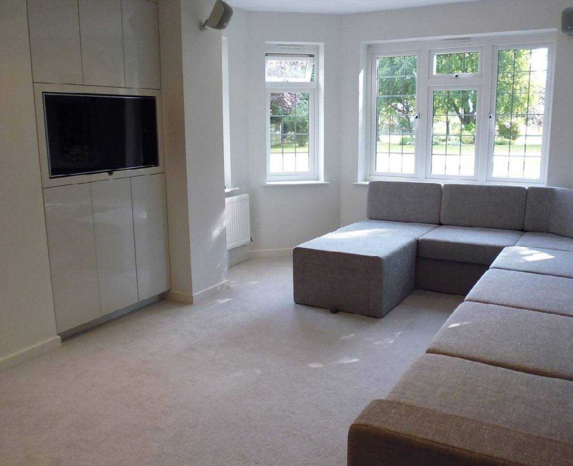 Нужно правильно определить размеры. Такая мебельная конструкция занимает много места в комнате, и пуф можно перемещать в пространстве. Поэтому, в небольшой комнате для такого дивана не будет места.