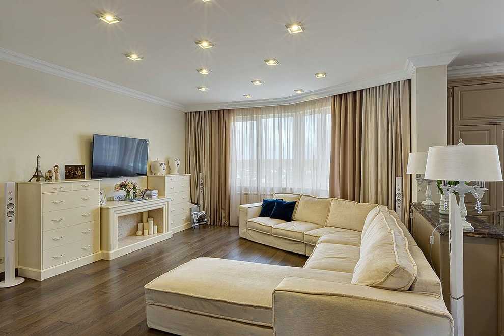 - Островное размещение дивана. «Сердце гостиной» находится в ее середине или в условной зоне приема гостей.