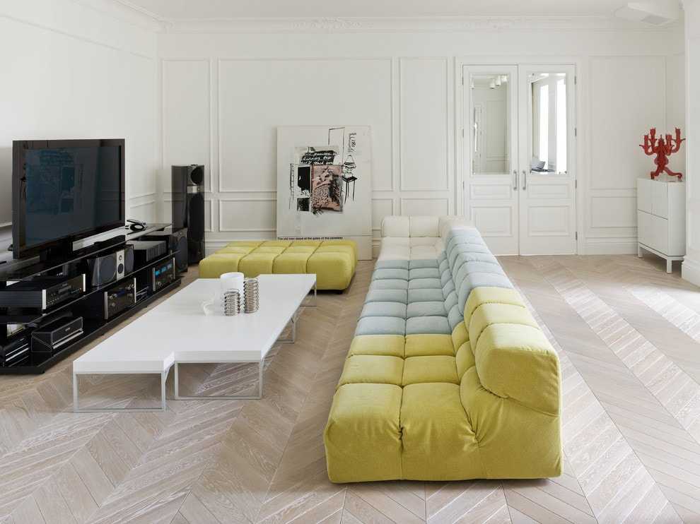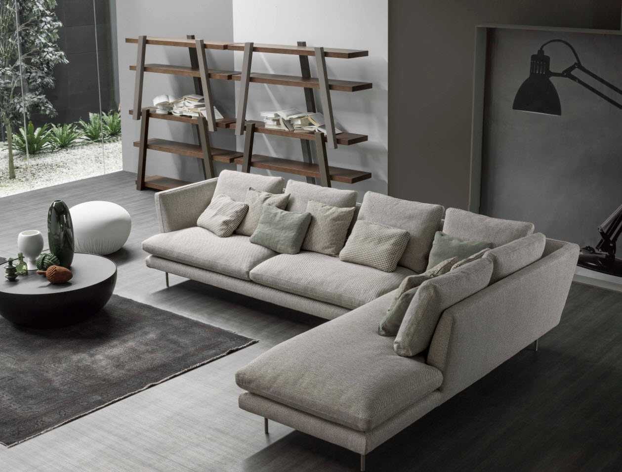 Обставляя большую гостиную, вместо того, чтобы выбирать мебель в традиционном формате, стоит рассмотреть угловой диван из нескольких составляющих. Модульные системы позволяют создать конструкцию, которая будет вписываться в комнату как по размеру, так и по типу полезных функций, внешнему виду, форме. Составляя мебель для отдыха с оттоманкой вы можете создать меньший диван, средний уголок в традиционной L-образной или большой U-образной форме. Все зависит от ваших потребностей.