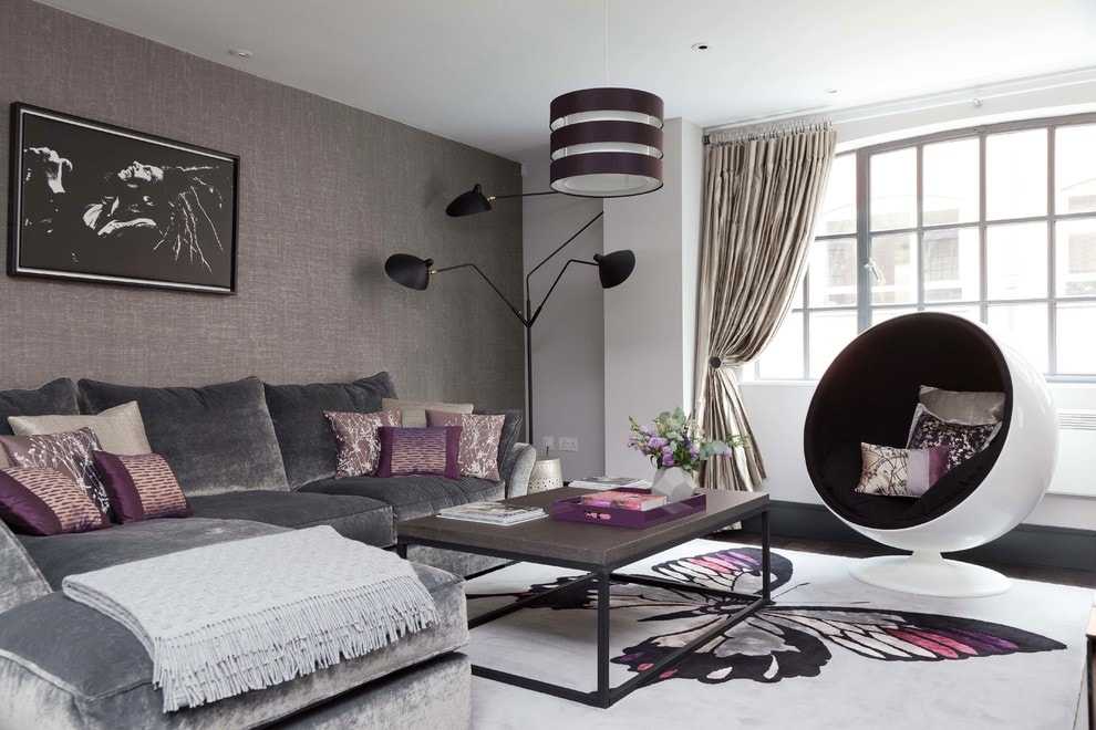 Оттенки серого цвета также очень популярны и могут быть использованы практически в любом интерьере. Серая гамма довольно обширна и включает в себя как светлые тона – пепельный, серебристый, так и темные – мокрый асфальт, мышиный и т. д. Для оформления интерьера в современном стиле такие оттенки подходят как нельзя лучше.