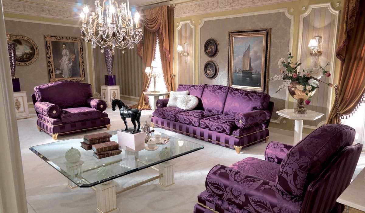 Бордовый диван лучше всего смотрится в интерьерах классического стиля.