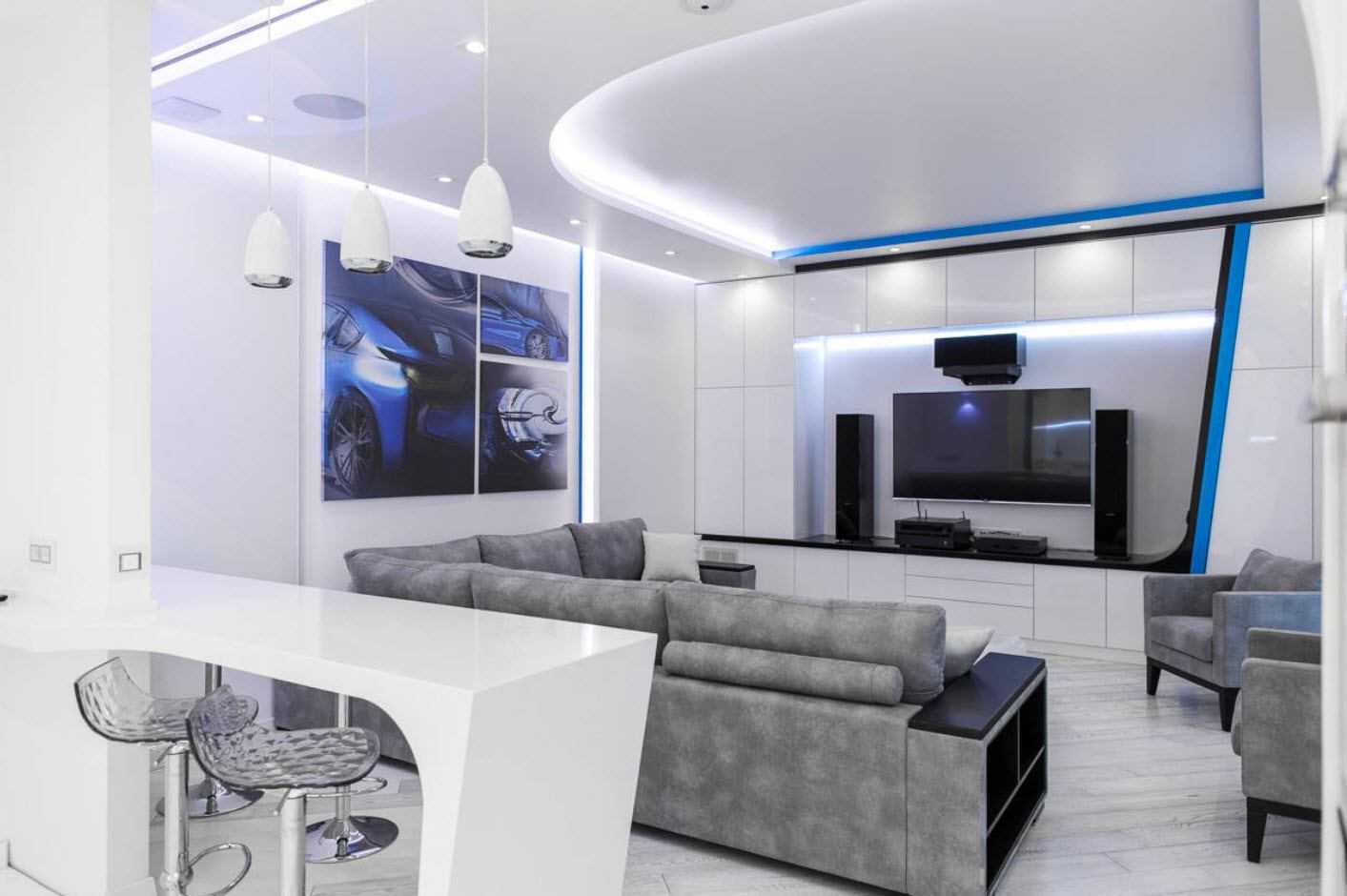 Если вы хотите украсить современную белую гостиную, подумайте, хотите ли вы добиться конечного эффекта благодаря различным структурам и материалам, или желаете ввести какой-то дополнительный цвет. Монохромную версию гораздо сложнее реализовать, потому что, к сожалению, белая расцветка имеет свои оттенки. Бывает, что сочетание двух элементов рядом создает некоторый диссонанс. Может оказаться, что один белый будет желтым, а другой сместится к ярко-серому. Когда вы поставите их рядом друг с другом, то вместо радости у создастся впечатление, что одна из этих вещей старая и изношенная. Вот почему более опытные декораторы рекомендуют сочетание белого с некоторым контрастным цветом. Это придаст эффект свежести и современности, и в то же время защитит вас от неприятных сюрпризов. Посмотрите несколько предложений белой гостиной и выберите для себя максимально подходящий вариант.