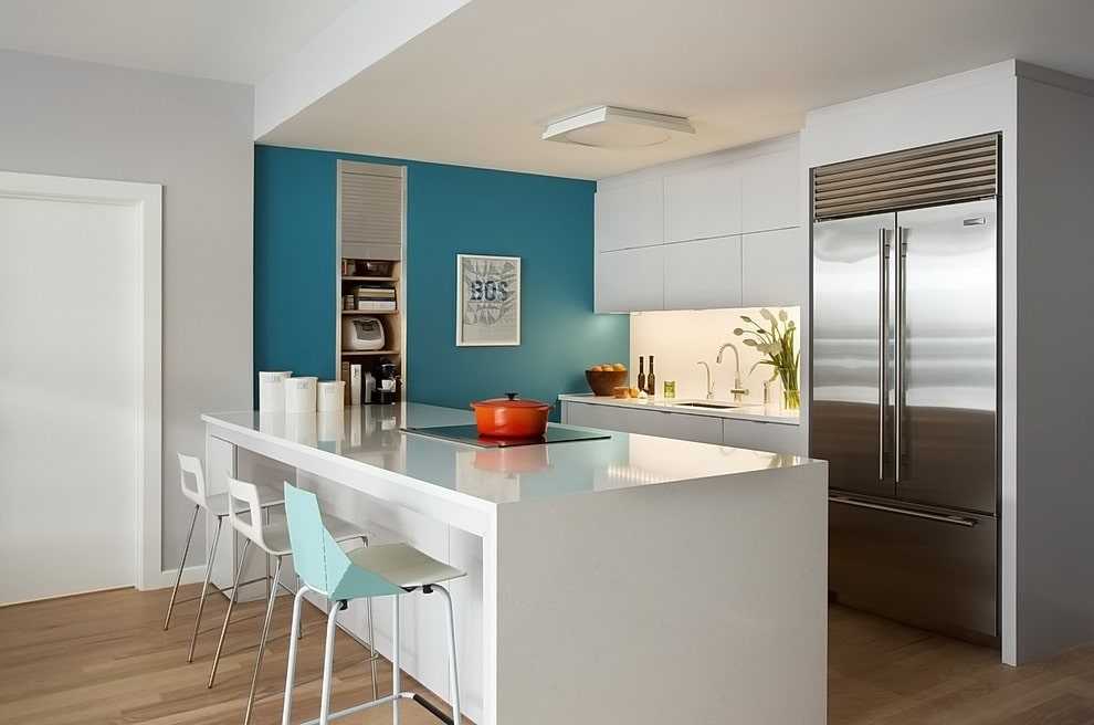 Сочетание белого цвета в интерьере кухни возможно практически с любым цветом спектра.