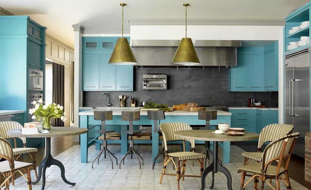 Когда речь идет о голубой кухне, многие представляют, что абсолютно все будет выполнено в данном цвете. На самом деле пространство для экспериментов есть всегда. Поэтому все чаще дизайнеры рекомендуют сочетать несколько оттенков в одном интерьере. Благодаря этому кухня будет не слишком яркой, и проводить в ней время точно будет приятно для всех членов семьи.