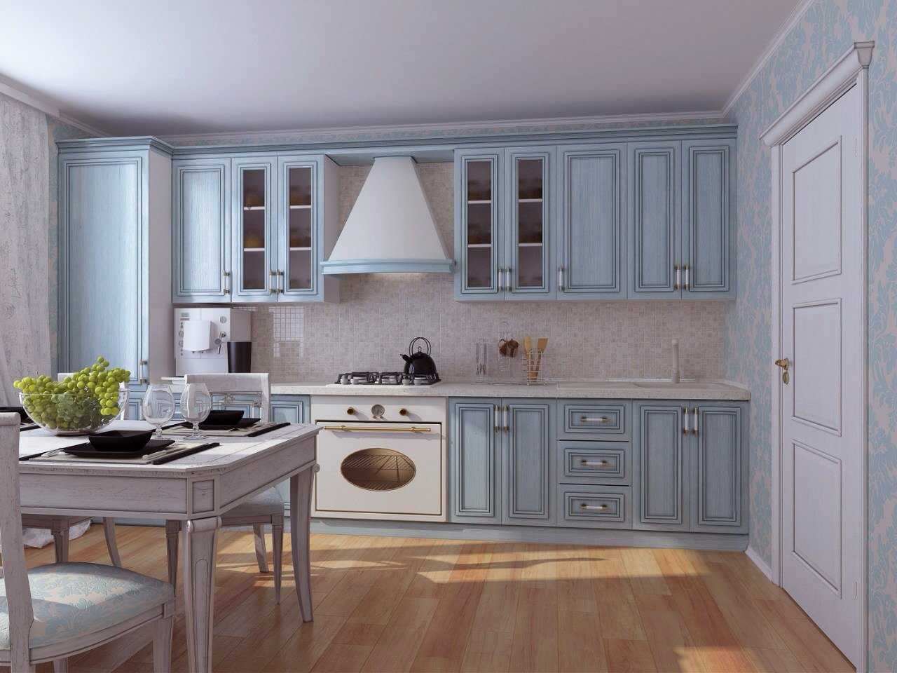Для создания дизайна синей кухни в классическом стиле характерно использование натуральных материалов.