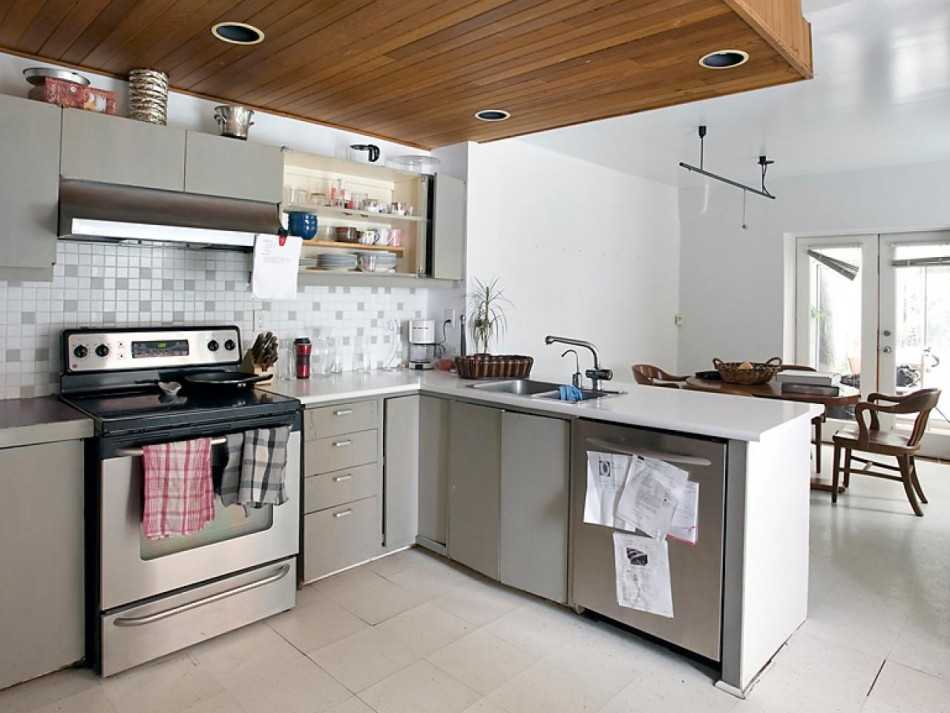 - Хорошая планировка кухонного пространства требует, чтобы у вас были широкие проходы. А этого сложно добиться в таком маленьком пространстве.