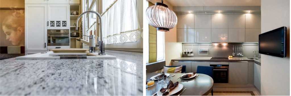 Особенно хороши они в глянцевых поверхностях современных кухонных гарнитуров в сочетании с белоснежным, графитовым, металликом или даже угольно-черным.