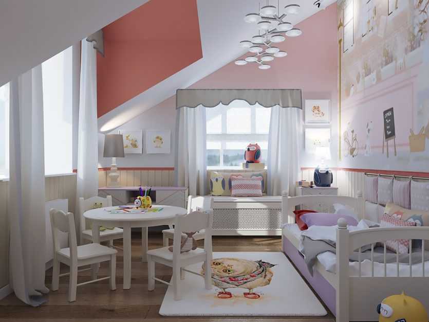 Готовая детская комната на мансарде фото, явно демонстрирует важность грамотного декорирования окон