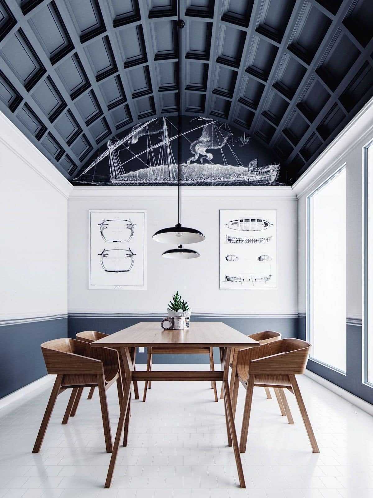 - большие рисунки хорошо смотрятся на потолке крупных кухонь;