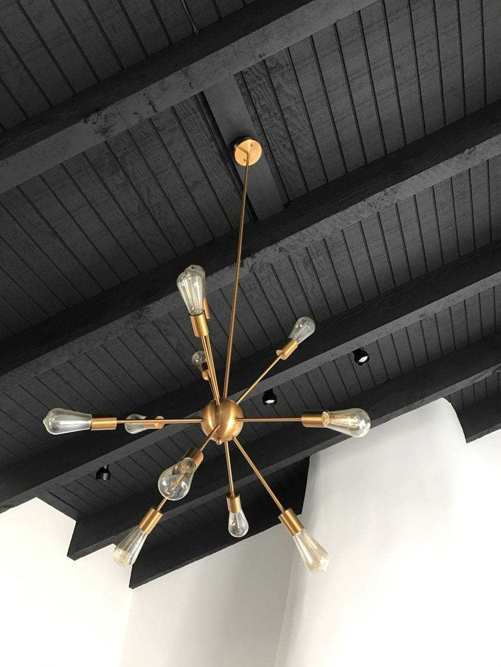 Потолочные балки, это несущие части конструкции и их нельзя убирать, поэтому при выборе дизайна нужно учесть их оформление или скрыть натяжным потоком, но от этого потеряется эффект высоких потолков.