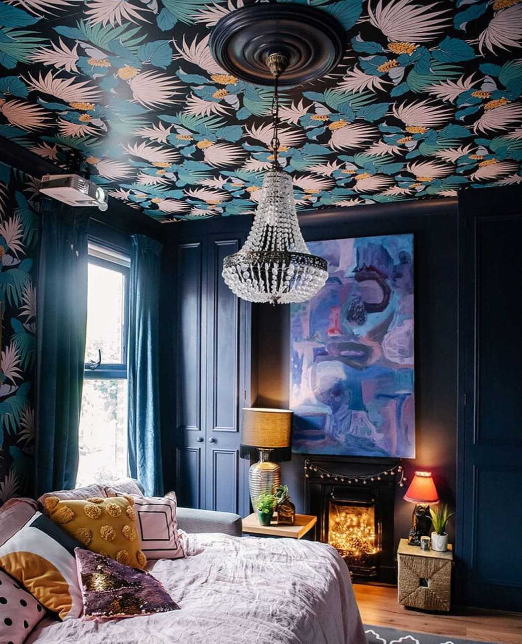 Привлекает потолок с обоями возможностью без применения сложных операций выровнять поверхность. Выбрав однотонные обои под покраску, можно при желании изменять их оттенок.