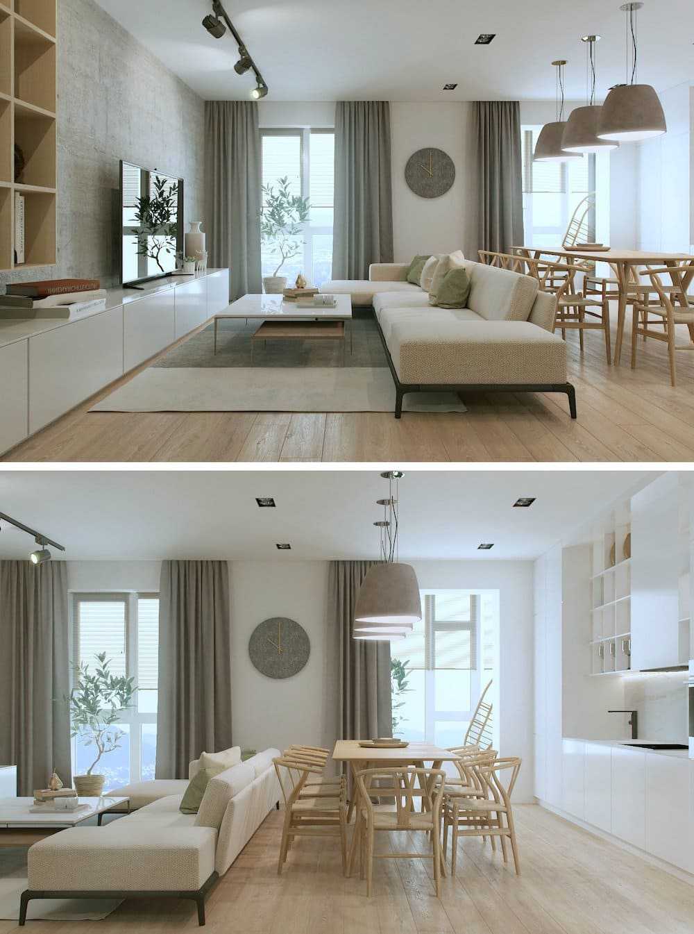 Когда в комнате несколько окон, то выделить место для зон проще — везде хорошее освещение и удобное расположение. В случае, когда в помещении только дно окно, необходимо определить, какая зона будет в приоритете с хорошим естественным освещением.