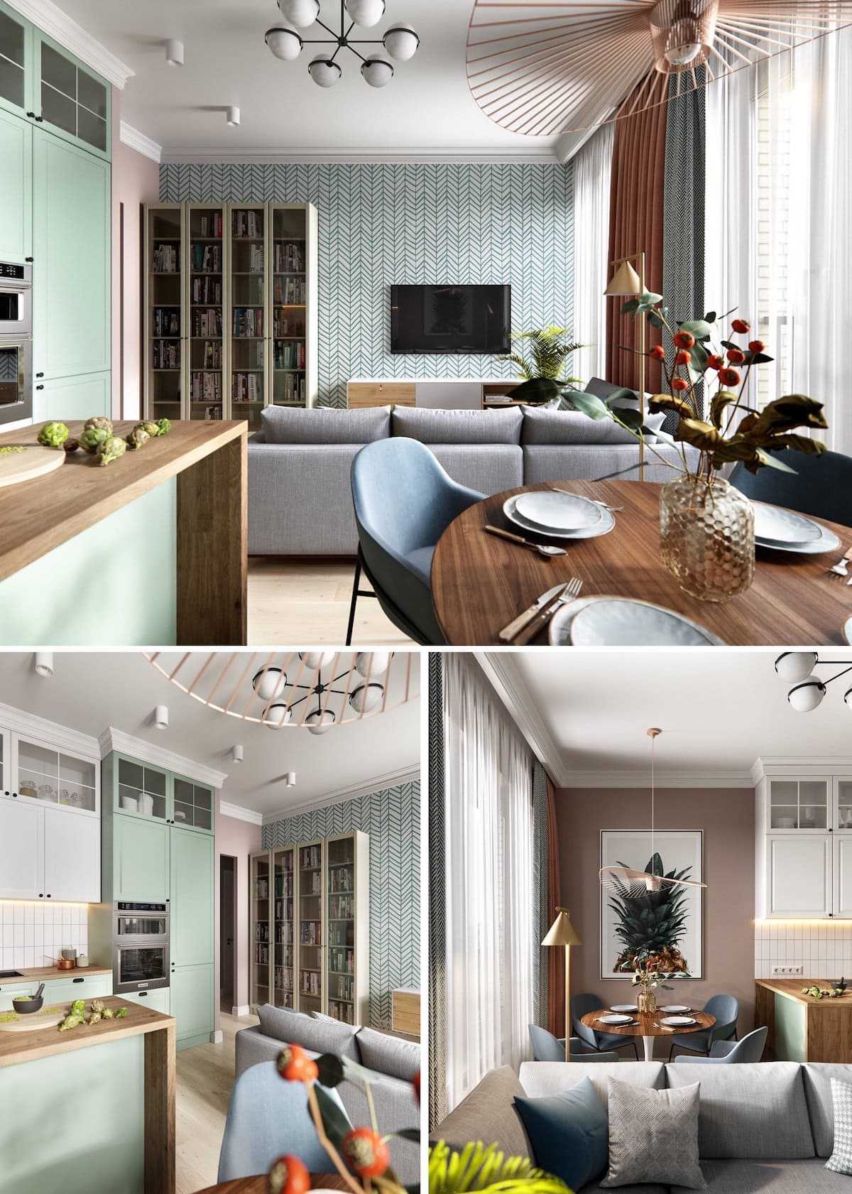Пуститесь на маленькие хитрости: обыграйте потолочные конструкции, сплетите их в единое целое со стенами, полами, техникой и мебелью.