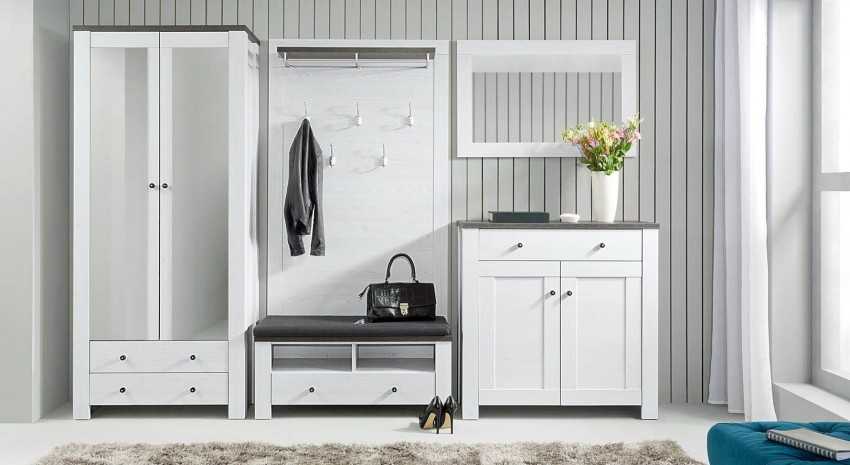 - Нельзя отказываться от мебели, какой бы маленькой комната ни была. Должны быть небольшая обувница, ростовое зеркало, открытые и закрытые вешалки, настенная полка.