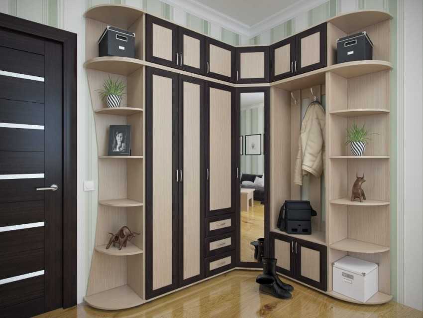 В условиях ограниченного пространства практически не остается свободных поверхностей для отделки и размещения мебели. В небольшом помещении устанавливают светлые шкафы-купе или модульные прихожие.