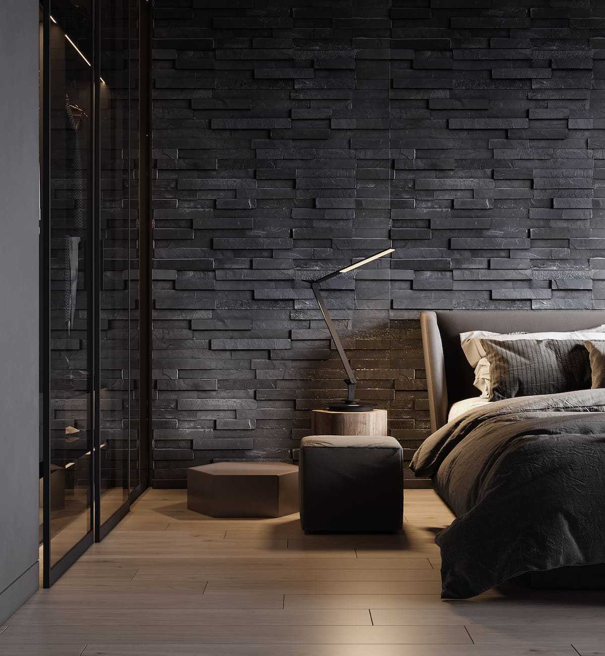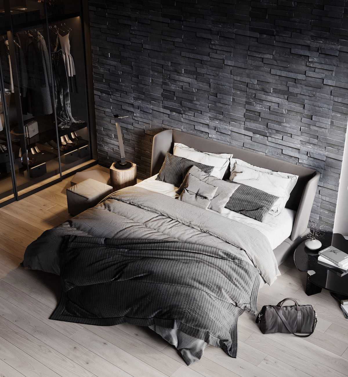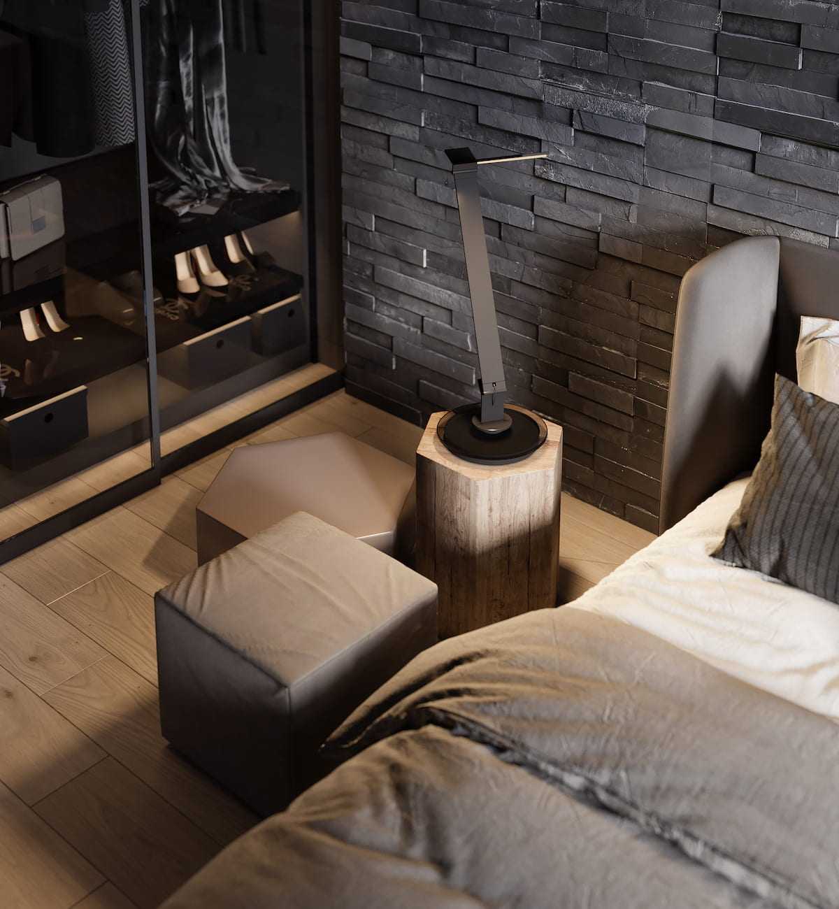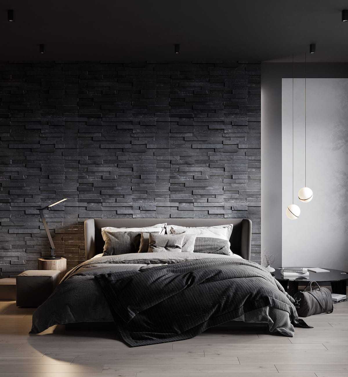 Если вы хотите солидную спальню, тогда используйте такие элементы дизайна как железные, кирпичные, древесные.