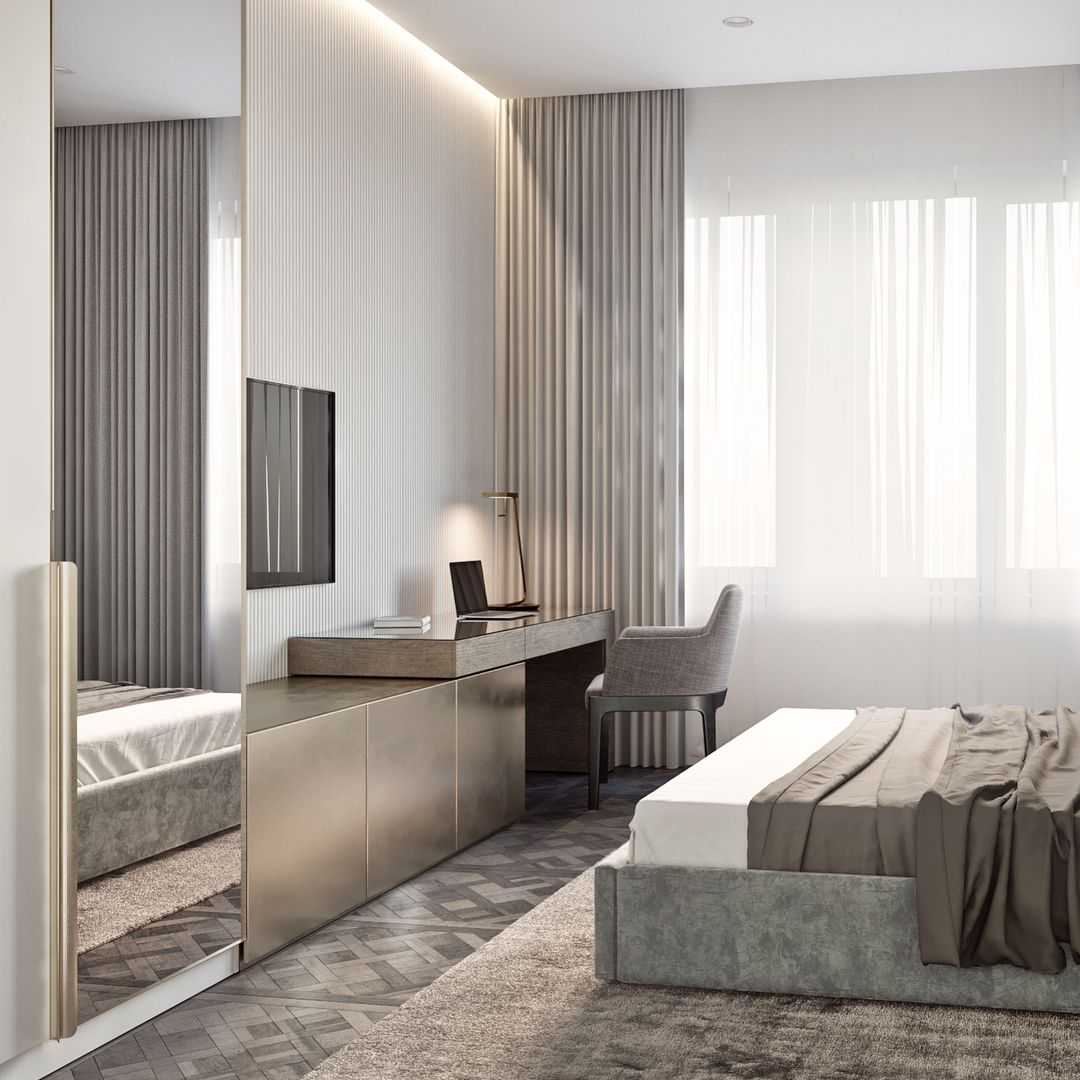 Не следует громоздить все без исключения в спальную комнату, дизайн обязан быть ненавязчивым.