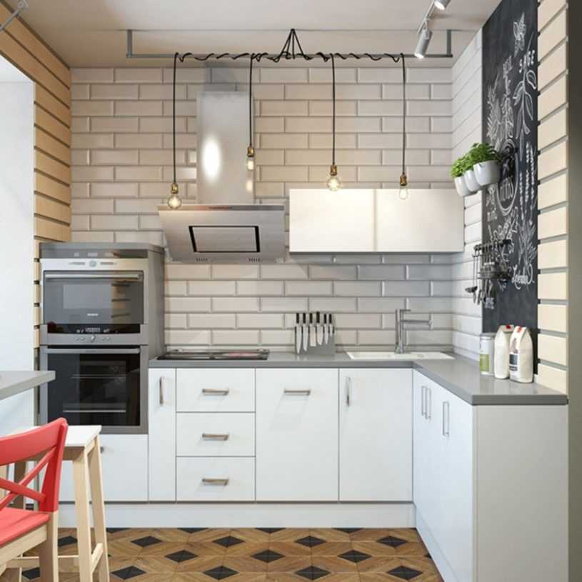Кухонный гарнитур должен быть компактным, практичным и функциональным. Для декорирования выбирают предметы в стиле ретро, яркие чайники, микроволновые печи.
