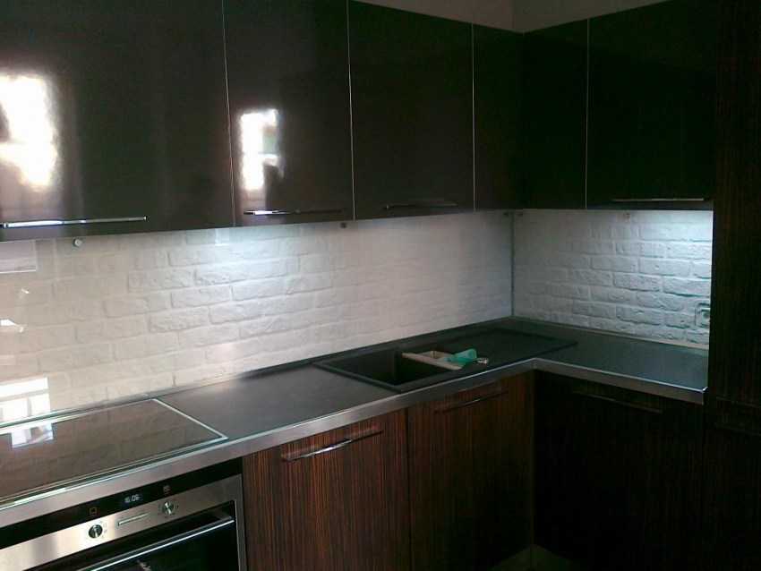 Обычный кирпич, не покрытый лаком или краской, имеет пористую поверхность, которая сложна в очистке. И жир, и грязь — все надолго останется на ней. Поэтому если вы не хотите прятать кирпич стен в области фартука за каким-либо другим покрытием, то обязательно покройте его лаком. Иначе «веселиться» во время уборки вам придется очень много.