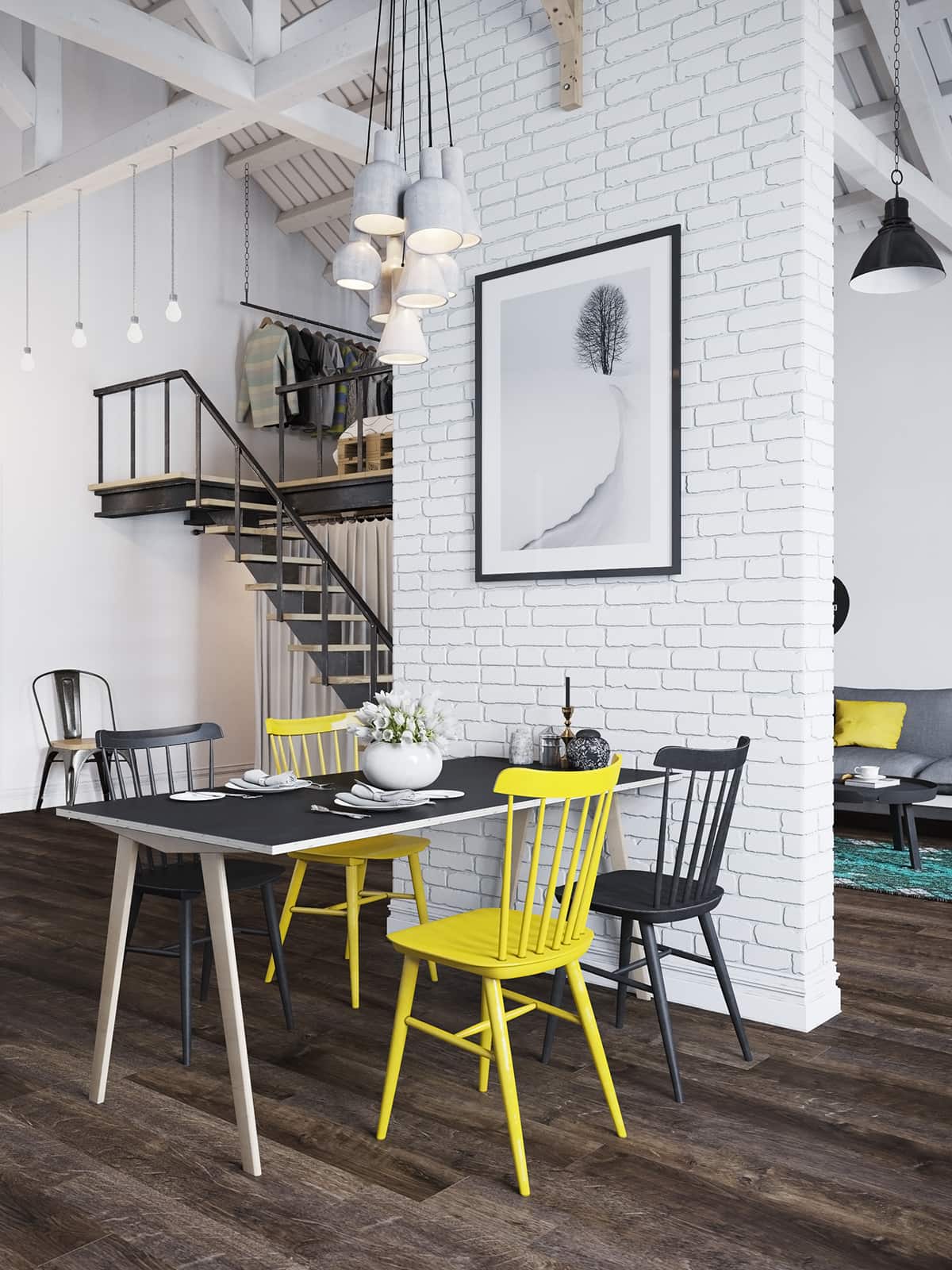 Для стиля лофт лучше всего подходят несколько цветов: коричневый, белый, чёрный и все оттенки серого. Они могут быть едва заметными или глубокими, насыщенными.