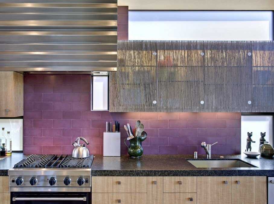С помощью фартука достаточно просто визуально увеличить пространство. Для этого надо использовать рисунок с горизонтальными полосами или же зеркальный вариант. Правда, в последнем случае за чистотой поверхности придется следить особо тщательно.