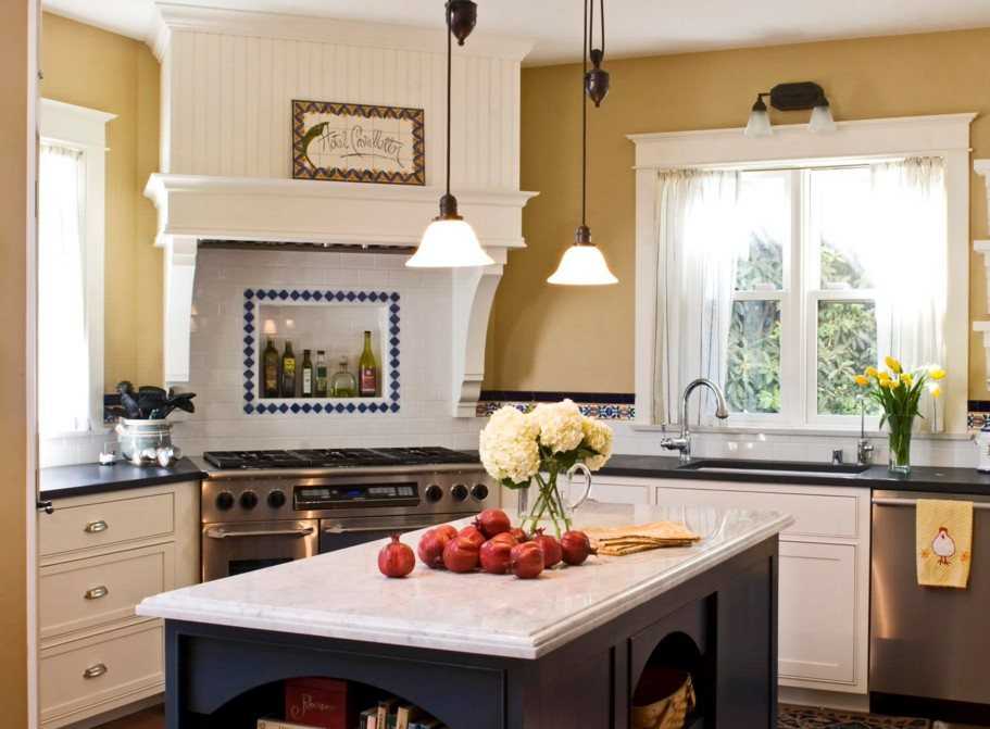 • Грамотное расположение «рабочего треугольника» — мойка, плита, холодильник.• Разместите точки активности в углах кухонной зоны.• Использование практичных и качественных отделочных материалов.• Правильный стиль с учетом геометрии и цветовых вариаций.• Использование современных механизмов и новейших технологий.• Обязательное наличие хорошего освещения и качественной мебели.