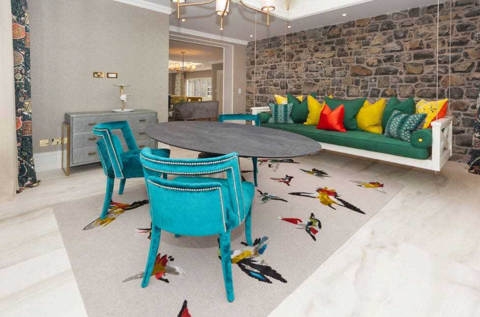 Для такого стиля очень много домовладельцев испытуют соблазн применять отважные и яркие цвета, впрочем, возможно, необходимо применять их очень осторожно, так как они могут быстро выйти из моды. Такие цвета также способны сделать комнату зрительно гораздо меньше, чем она будет в действительности